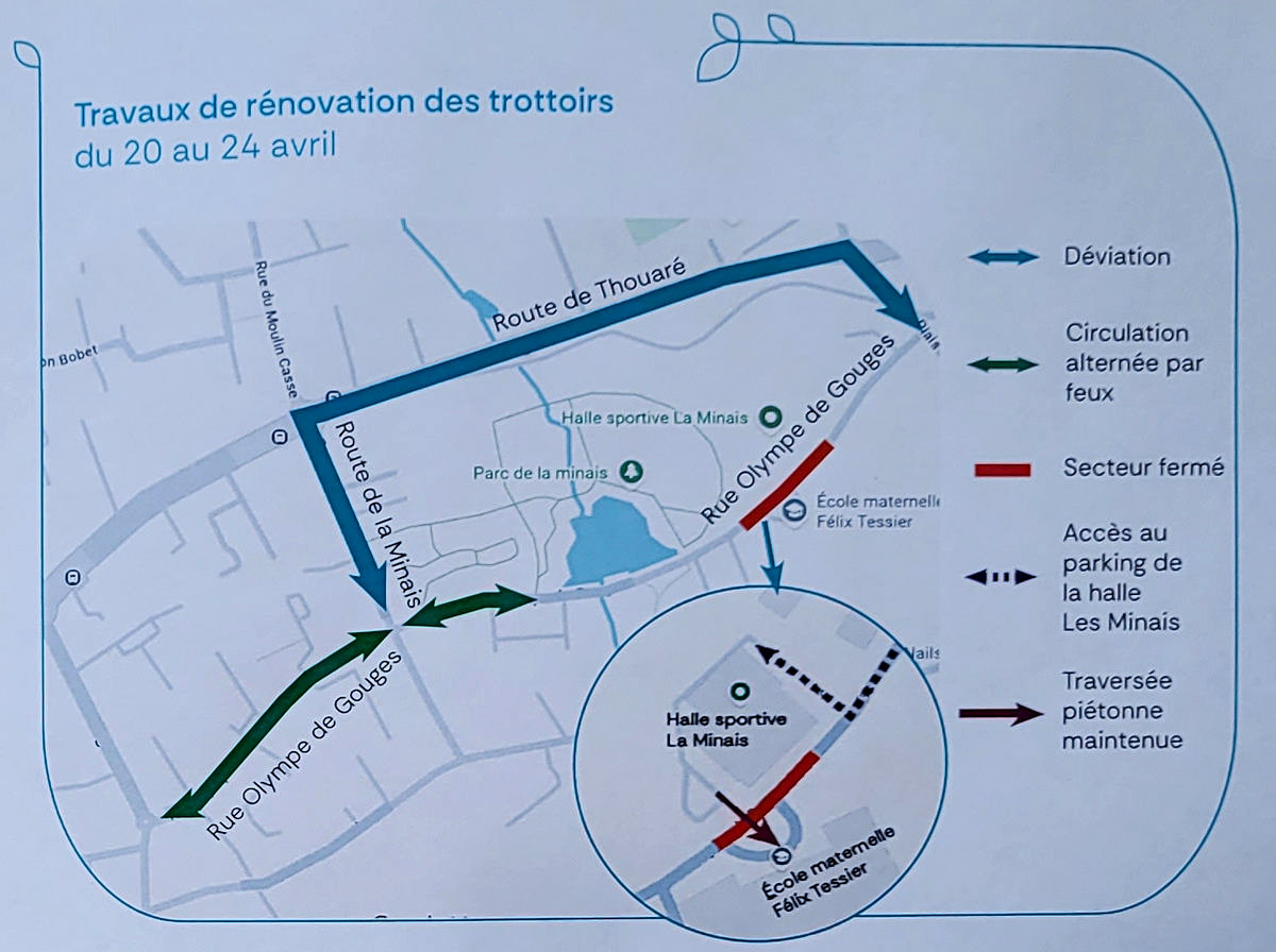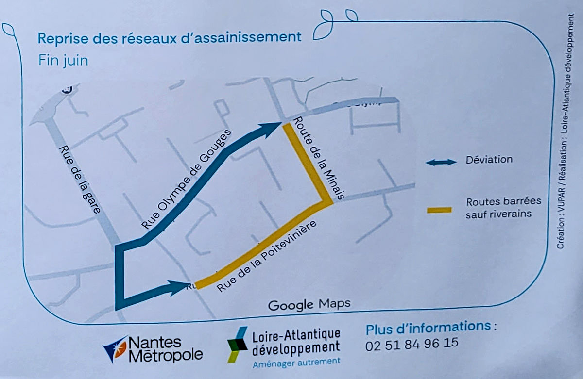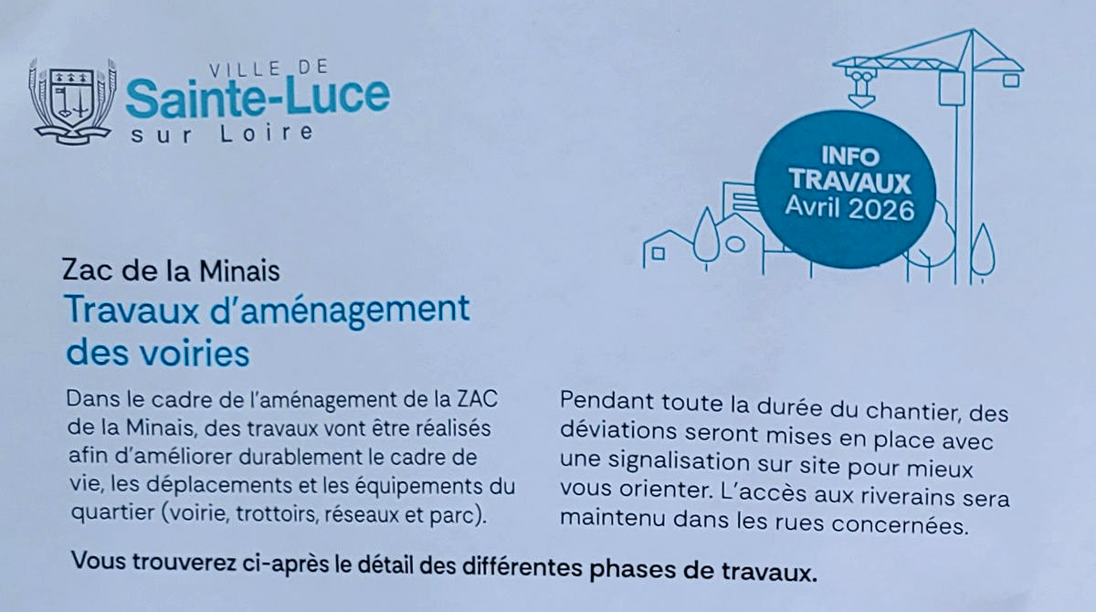 Attention, la circulation dans le quartier va être affectée en ce printemps 2026 par des travaux que réalisera « Loire-Atlantique Développement » qui aménage la ZAC de la Minais.